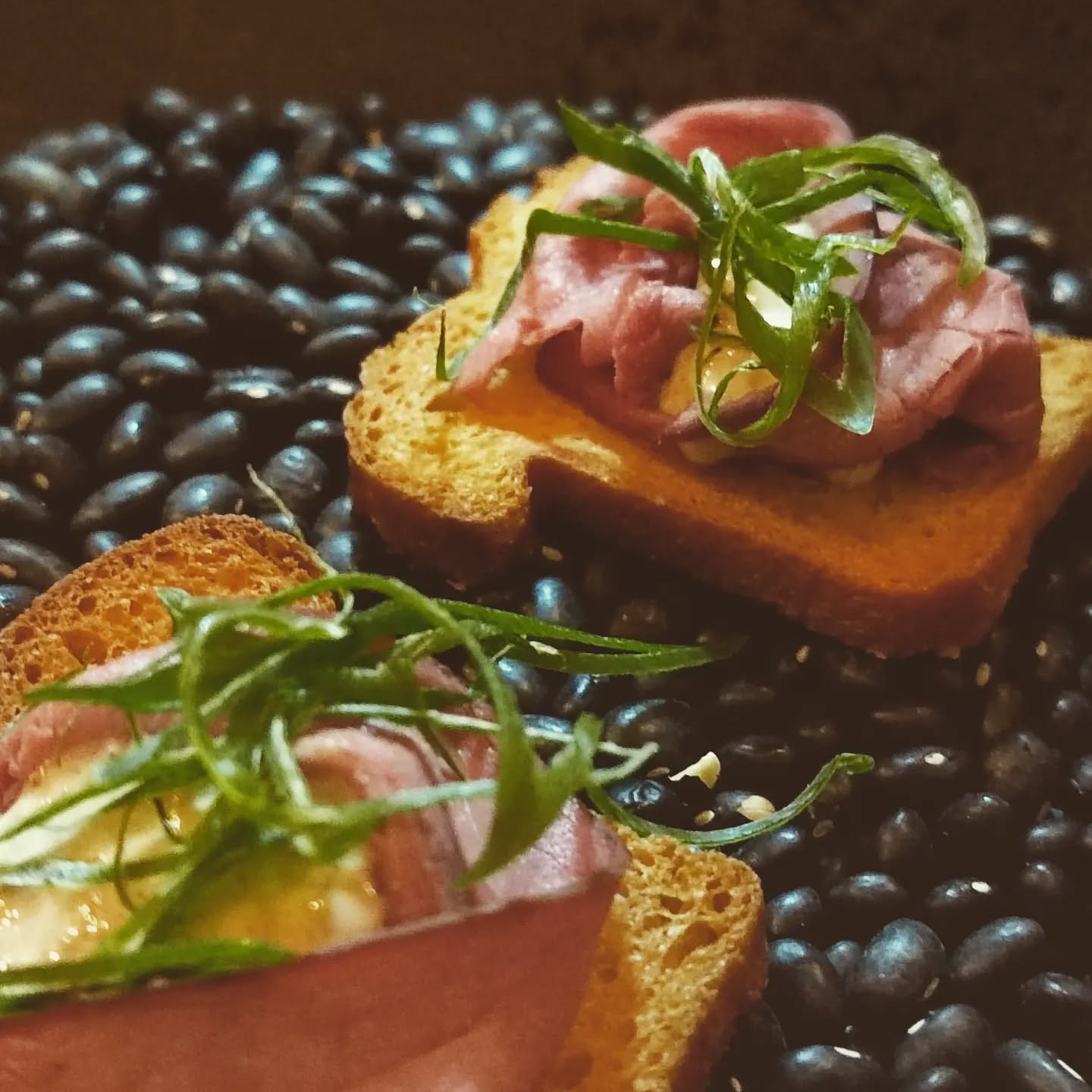 #amusegueule #pulledpork #kalfslonghaas #diamanthaas #cremebrulee