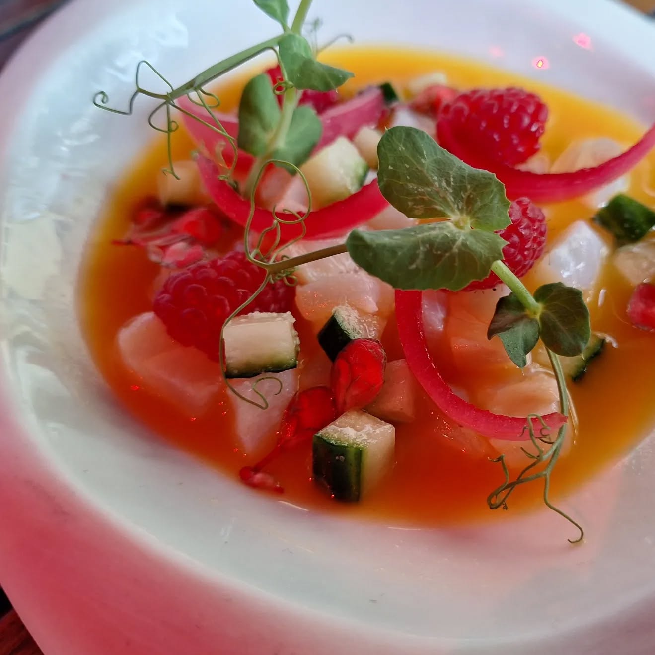 #ceviche van #zeebaars #haring #eendenborst #sashimi van #watermelon #buikspek #gepocheerde #pruim...